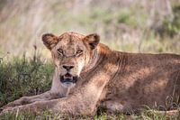Uiteindelijk ben ik erin geslaagd precies deze unieke sfeer van wilde dieren vast te leggen. Hier zie je een leeuwin in het gras