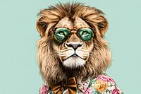 Dit unieke ontwerp brengt een stijlvolle en humoristische touch aan je interieur. De afbeelding toont een majestueuze leeuw, gekleed in een kleurrijk bloemenpatroon en een chique zonnebril. Deze opvallende combinatie van klassieke kracht en moderne flair maakt dit kunstwerk een echte eyecatcher. Perfect voor liefhebbers van dieren, kunst en originaliteit. Hang het in je woonkamer of kantoor om direct een speelse en stijlvolle sfeer te creëren. Het gebruik van levendige kleuren zoals goud, groen en roze geeft dit werk extra energie en diepte. Een must-have voor iedereen die van unieke wanddecoratie houdt!