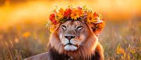 Een majestueuze leeuw, getooid met een kleurrijke bloemenkrans, straalt een fascinerende sfeer van rust en kracht uit. De warme kleurtinten van de achtergrond geven de afbeelding een magische sfeer. Dit sieraad is perfect voor een woonkamer of creatieve ruimte om een harmonieuze en inspirerende sfeer te creëren.