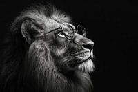 Koop dit leeuwen kunstwerk Leeuw met een bril in het zwart wit van Digitale Schilderijen op canvas, aluminium dibond, (ingelijste) fotoprint, behang en ArtFrame, op maat geprint in Fine-Art kwaliteit.