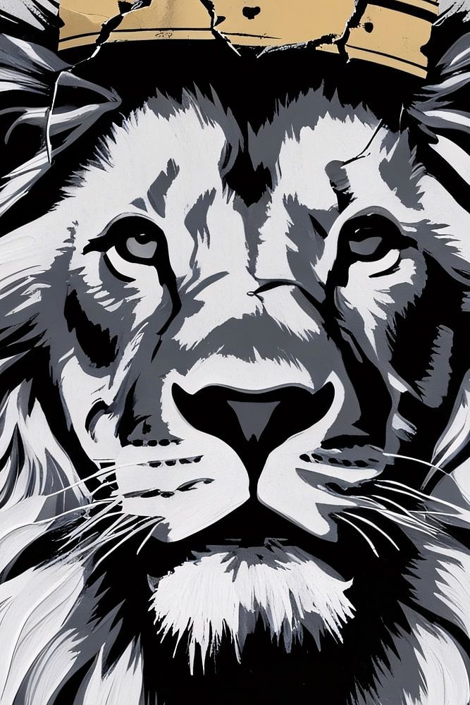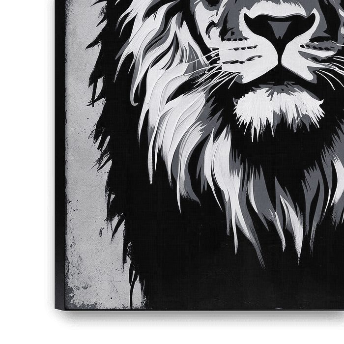 Dit unieke kunstwerk toont een krachtige leeuw met een gouden kroon, een symbool van kracht en majesteit. Het ontwerp combineert monochrome tinten met een vleugje goud, waardoor het een eigentijdse en verfijnde uitstraling heeft. De stijl is minimalistisch met een street art-invloed, perfect voor moderne interieurs. Of het nu in een woonkamer, kantoor of slaapkamer wordt geplaatst, dit stuk trekt gegarandeerd de aandacht en inspireert met zijn royale thema. Ideaal voor dierenliefhebbers en kunstverzamelaars die op zoek zijn naar een opvallend en betekenisvol werk.