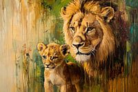 Leeuw met welp in kunststijl van Imperial Art House