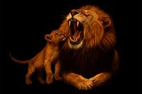 Koop dit digital art kunstwerk Leeuw met welp. van Bert Quaedvlieg als reproductie op canvas, aluminium dibond, (ingelijste) fotoprint, behang en ArtFrame, op maat geprint in Fine-Art kwaliteit.