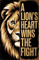 Dit krachtige kunstwerk combineert een indrukwekkend portret van een leeuw met een inspirerende boodschap: A Lion's Heart Wins the Fight. De combinatie van een gedetailleerde illustratie en gedurfde typografie maakt dit stuk perfect voor iedereen die wat extra motivatie wil. De gouden tinten geven het ontwerp een luxe uitstraling,…