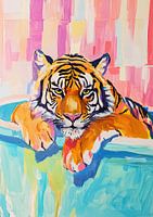 Een leeuw in een badkuip combineert kracht en sereniteit op een fascinerende manier. Het laat zien dat zelfs de meest krachtige wezens momenten van ontspanning nodig hebben. Dit beeld herinnert ons eraan dat zelfzorg en innerlijke rust bronnen van kracht zijn. De combinatie van wildheid en comfort is een humoristisch symbool van levensvreugde. Het nodigt ons uit om te genieten van koninklijke momenten van ontspanning, zelfs in het dagelijks leven.