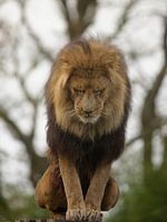 Deze leeuw, bij ZooParc overloon, zat er wat verlegen bij. Zo tref je ze niet vaak aan . meestal liggen ze te slapen, of ze kijken alert rond en zitten te wachten op het eten.