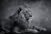 Prachtige leeuw met indrukwekkende manen, edel in zwart-wit. De koning onder de grote katten.