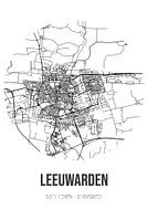 Zwart-witte landkaart, stratenplan of plattegrond van Leeuwarden. Leeuwarden is gelegen in de gemeente Leeuwarden, provincie Fryslan. Op de stadskaart zijn alle openbare wegen in Leeuwarden opgenomen. Verder is de kaart voorzien van de coördinaten van het centrum van Leeuwarden.