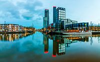 Leeuwarden, 1 van de Friese elf steden bij de Wester Stadsgracht. Het centrum met in het midden de Achmea toren.