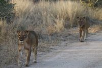 Tijdens een vroege gamedrive in de ochtend kwam ik deze leeuwen tegen. De leeuwen hadden net wat water gedronken en gingen aan de wandel.