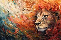 Leeuwenkracht in Kleurensymfonie" is een indrukwekkend kunstwerk waarin de majestueuze essentie van de leeuw wordt gevangen binnen een wervelwind van kleur en beweging. De trotse blik van de leeuw.