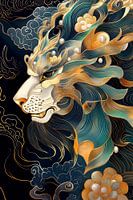 Leeuwenkunst met parels en turquoise details van Digitale Schilderijen