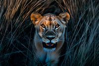 De aanblik van een leeuwin die tussen het hoge gras vandaan piept is majestueus en krachtig. Haar doordringende ogen vertellen verhalen van wildernis en vrijheid. Dit fascinerende natuurkunstwerk is perfect voor in de woonkamer, waar het gesprekken stimuleert en een sfeer van avontuur creëert.