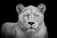 Zwart-wit foto van een leeuwin