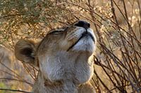 Leeuwin genietend van de ochtendzon in Okavango delta