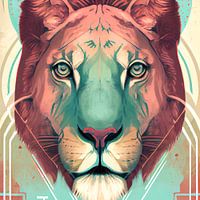 Dit is de kop van Leeuwin, het geschilderde fantasieportret van de koningin van de dieren.