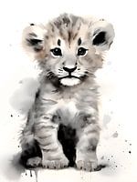 'Leeuwtje voor kinderkamer' is een tekening van leeuwtje (welpje) die mooi zou staan in een baby of kinderkamer. Er is gebruik gemaakt van waterverf en zachte kleuren.
