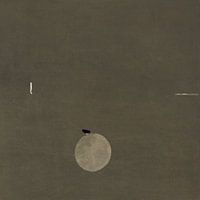 Een meesterwerk dat hedendaags Oosters minimalisme en Zen-achtige ruimte belichaamt. Het doek wordt verankerd door een stabiele, fijn gestructureerde achtergrond in donkere aardetinten, die de grenzeloze leegte en de grond van het zijn symboliseert. De visuele focus ligt in een beige-grijze bol in het midden, met daarboven een…