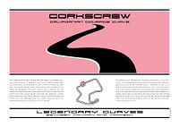 Print graphic van een reeks legendarische bochten op de beroemdste racecircuits.