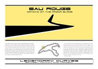 Print graphic van een reeks legendarische bochten op de beroemdste racecircuits.