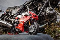 Met op de achtergrond de vintage Ducati SD 900 Darmah uit 1982