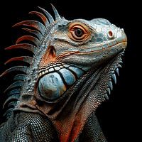 Leguaan portret schilderij die een luxe toevoeging zal zijn aan elke ruimte. Met zijn unieke en stijlvolle uitstraling is het een ware eyecatcher. De schitterende kleuren en het bijzondere ontwerp maken dit kunstwerk 100% uniek en origineel. Het is de perfecte fotoprint om je interieur helemaal af te maken.