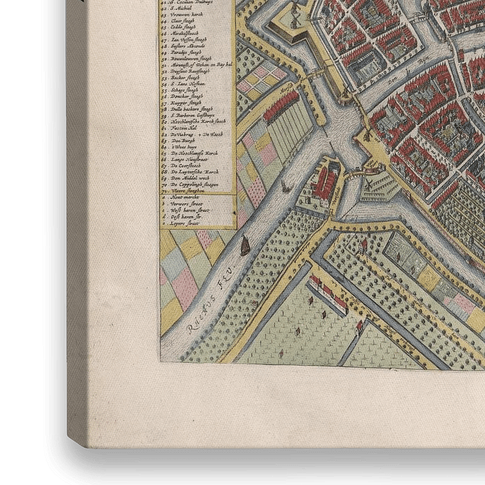 Koop de illustratie Leiden, Stadsplattegrond Joan Blaeu 1652 van Atelier Liesjes op canvas, aluminium dibond, (ingelijste) fotoprint, behang en ArtFrame, op maat geprint in Fine-Art kwaliteit.