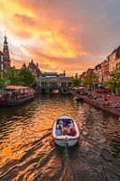 Koop de foto Leiden - Zonsondergang bij de Koornbrug met een bootje (0056) van Reezyard op canvas, aluminium dibond, (ingelijste) fotoprint, behang en ArtFrame, op maat geprint in Fine-Art kwaliteit.