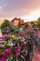 Koop dit bloemen kunstwerk Leiden - Zonsondergang met bloembakken langs de oude singel (0054) van Reezyard als print op canvas, aluminium dibond, (ingelijste) fotoprint, behang en ArtFrame. Voor jou op maat geprint in Fine-Art kwaliteit.