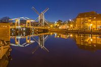 De foto van Molen de Put en de Rembrandtbrug is gemaakt op een mooie heldere avond in Leiden, april 2017.