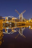 De foto van Molen de Put en de Rembrandtbrug is gemaakt op een mooie heldere avond in Leiden, april 2017.