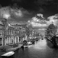 Zwart witte Fine art foto van Leiden. Dit uitzicht is vanaf de Kerkbrug.