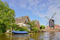 Molen de Put in Leiden aan het water op een mooie zomerse dag. Leiden is een stad en gemeente in de Nederlandse provincie Zuid-Holland. Met 124.294 inwoners is Leiden, naar inwoneraantal gemeten, na Rotterdam, Den Haag en Zoetermeer de vierde gemeente van Zuid-Holland.