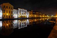 De Leidse Schouwburg in Leiden, stad met de vele grachten en statige grachtenpanden, grachten en mooie monumenten.