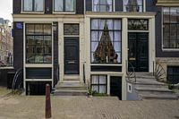 De grachtenpanden op de Leidsegracht staan -net als alle huizen in de Amsterdamse binnenstad- schots en scheef. De deuren zijn allemaal antiekgroen geverfd. Het geeft een uniek sfeerbeeld mee.