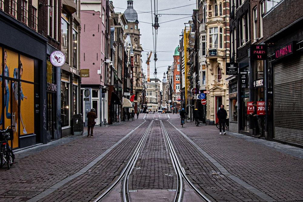 Bedenk je maar eens hoe lang geleden het is dat de Leidsestraat zo leeg was. Geen hordes toeristen, maar een paar wandelaars. Eind maart is de coronacrisis ook in Amsterdam een feit.