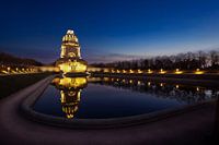 Koop de foto Leipzig Monument voor de Volkerenslag bij het Blauwe Uur van Thomas Rieger op canvas, aluminium dibond, (ingelijste) fotoprint, behang en ArtFrame, op maat geprint in Fine-Art kwaliteit.