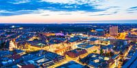 Uitzicht vanaf de hoogbouw van de stad naar het centrum van Leipzig, Saksen, Duitsland.