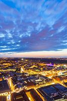 Uitzicht vanaf de wolkenkrabber boven Leipzig bij nacht, Saksen, Duitsland