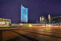 Avondsfeer in Leipzig met uitzicht op de toren van Leipzig