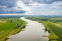 De Lek met regenwolken erboven stroomt door het landschap tussen Nieuwegeind en Wijk bij Duurstede in Utrecht en Gelderland, Nederland.