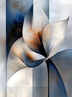Abstracte lelie bloem in aardetinten met blauw,roestbruin en crème wit op een grove canvas textuur.