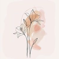 Minimalistische schets van de lelie in zachte pasteltinten. Abstract, tijdloos en elegant. Deze sierlijke afbeelding past overal en zorgt voor een stijlvol interieur.