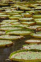 Reusachtige waterlelies in de Botanische Tuinen in Pamplemousses, Mauritius, Afrika.