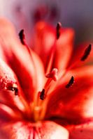 Foto van de Meeldraden en Stamper van een rode Lelie.