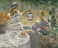Zonlicht overspoelt de veranda van Helen Turners huisje in de kunstenaarskolonie Cragsmoor, New York. Gedempte schaduwen wedijveren met patronen op het porselein, het tafelkleed en de jurken, en testen de vaardigheid van de kunstenares om naar het leven te schilderen. De dochter van een buurvrouw poseerde voor beide figuren, met een ander kapsel en kostuum. Turner exposeerde haar schilderijen met andere vrouwelijke pioniers, waaronder de beeldhouwster Harriet Frishmuth.