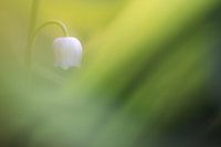 De avondzon schijnt prachtig op de balderen van deze kleine bloem. Een Lelietje-van-Dalen op haar mooist.