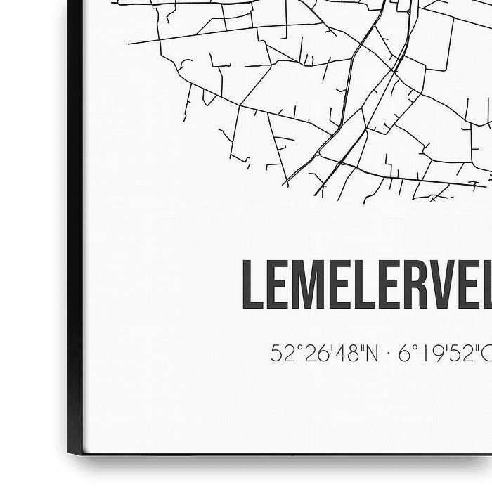 Koop dit abstracte kunstwerk Lemelerveld (Overijssel) | Landkaart | Zwart-wit van Stad & Wand op canvas, aluminium dibond, (ingelijste) fotoprint, behang en ArtFrame, op maat geprint in Fine-Art kwaliteit.