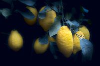 Fotografie van een citroenboom in het blauwe uurtje.