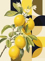 Illustratie van een boomtak met citroenen, op een Bauhaus achtergrond.